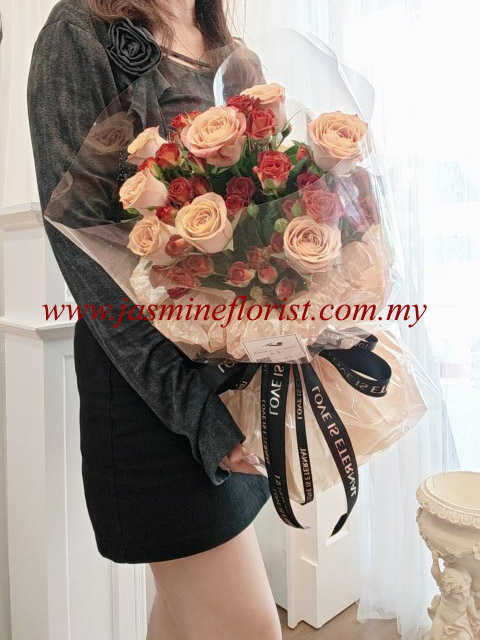 (Pre-Order)Cappucino Rose Mix Rose Spray Chocolate Bubble HB248