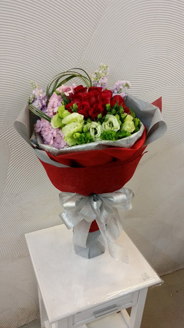 Red Rose, Pink hydrangea, Eustoma, Mathiola HB042