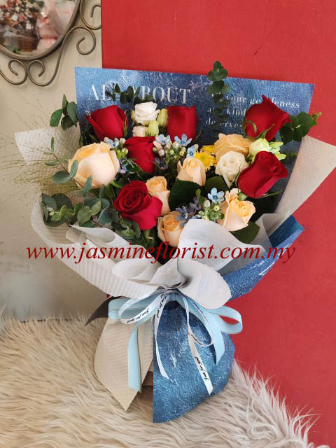 Red Rose, Champagne Rose mix Eustoma & Oxypetalum HB228