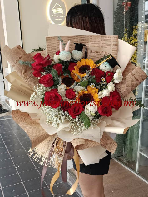 Sunflower, Red Rose, Pinpon, Eustoma white HB202