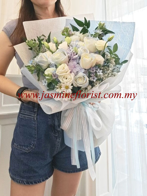 PRE-ORDER Blue Hydrangea mix White Blue Rose (Spray Color) Eustoma, Oxy Blue HB253