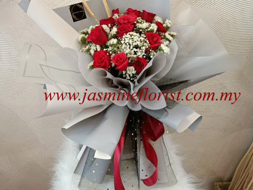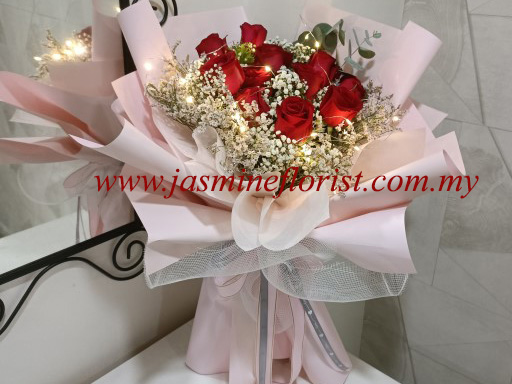 Red Rose with Baby Breath