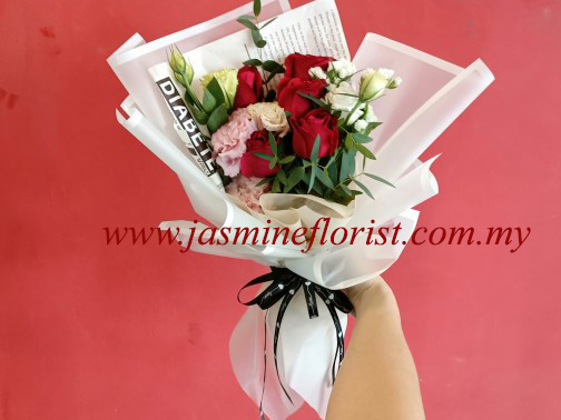 Red Rose, White Eustoma